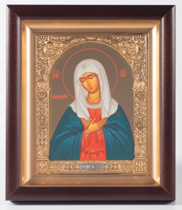 Икона в киоте 18х24 фигурный, темпера, риза-рамка объемная, открытая, золочёная, никелирование Умиление 1