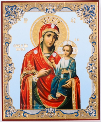 Икона в деревянной рамке №1 30х40 двойное тиснение, упаковка Иверская БМ 3