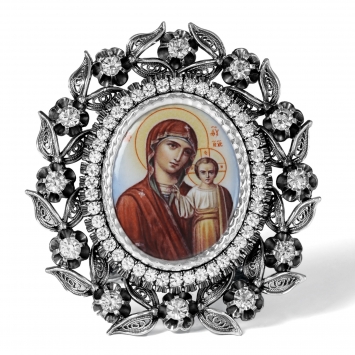 Икона настольная №142 деколь / серебрение / Казанская БМ