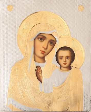 Икона настольная №135 деколь / золочение, серебрение / Казанская БМ
