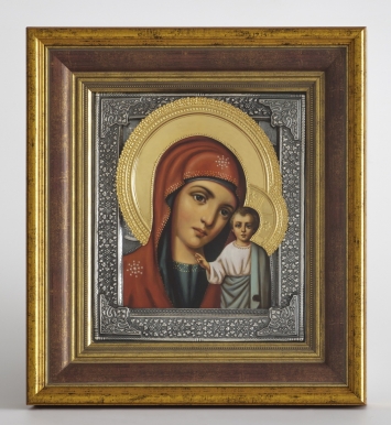 Икона живописная в киоте 24х30 масло, риза №17, матовое глянцевое золочение, киот №22 Казанская БМ
