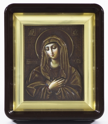 Икона в пластмассовой рамке Киот 11х13 латун. подрамник риза патинированная Владимирская БМ