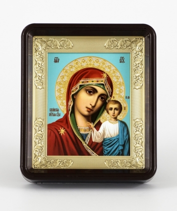 Икона в пластмассовой рамке Киот 11х13 латун. подрамник №2 Казанская БМ 1