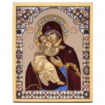 Икона в пластмассовой рамке 6х7 латунированная риза Владимирская БМ