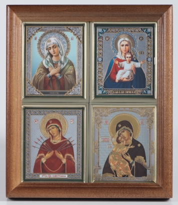 Икона в деревянной рамке 15х18 четырехместная, двойное тиснение Умиление- Аз есмь-Семистрельная-Владимирская БМ Вы используете устаревший браузер, который создает угрозу безопасности использования сайта.