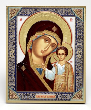 Икона на доске 18х24 золоченое покрытие, объёмная печать, лак Казанская БМ 6