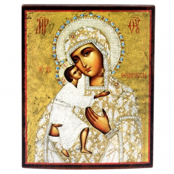 Икона на доске 13х15 золоченое покрытие, объёмная печать, лак Феодоровская БМ 5