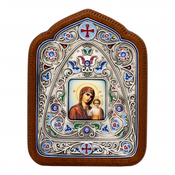 Икона настольная №136 деколь, эмаль / золочение, серебрение / Казанская БМ