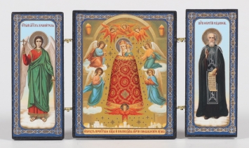 Складни деревянные 7х18 трехстворчатые, двойное тиснение Спаситель-Казанская БМ-Н.Чудотворец 29