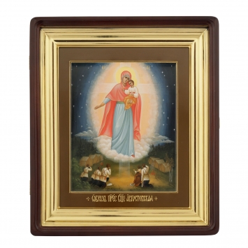 Икона живописная на доске в киоте 24х30 масло, золоченый нимб, киот №1 Семистрельная БМ, 04598