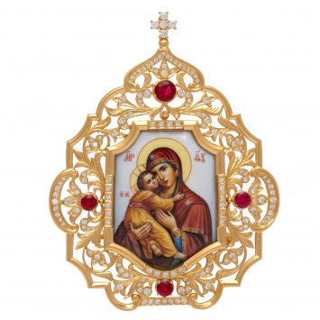 Икона настольная №152 / Фианиты деколь / золочение / Владимирская