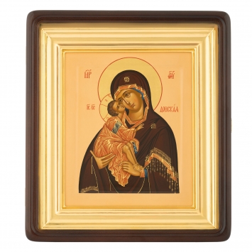 Икона живописная в киоте 11х13 масло, риза открытая, латунь, золочение, киот №2 Умиление БМ, 03914