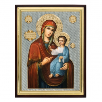 Икона живописная в серебряном окладе 50*70 / киот / Казанская БМ (УИН 6432205322791661)