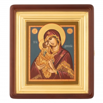 Икона живописная на доске в киоте 18х24 темпера, золоченый нимб, ковчег, киот №1 Донская БМ, 03053