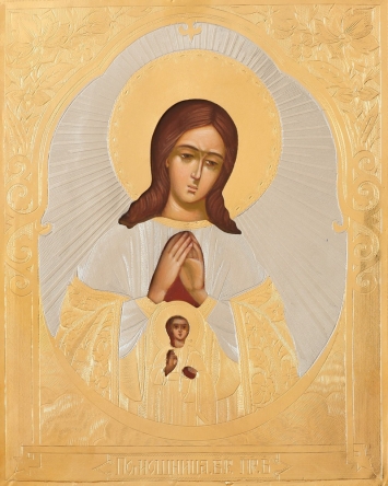 Икона на доске 22х26 объёмная печать, лак Всецарица