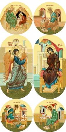 Иконы 30х30, МДФ, круглые (комплект 6шт.) Царские врата иконописные №2
