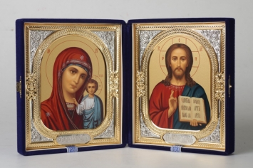 Складень в футляре 18х24 бархат, фото, риза-рамка №1 Спаситель-Казанская БМ
