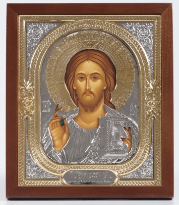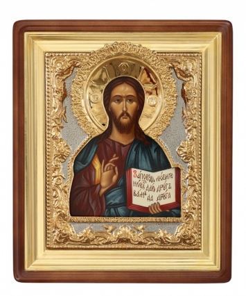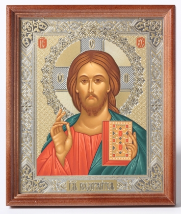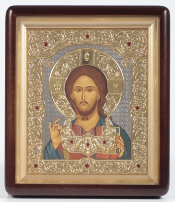 Икона живописная в гальванопластической ризе 18*24 серебро / киот / Господь Вседержитель (УИН)