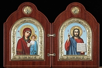 Складень резной Фигурный, икона 9х12 канвас, №1 Спаситель-Казанская БМ
