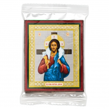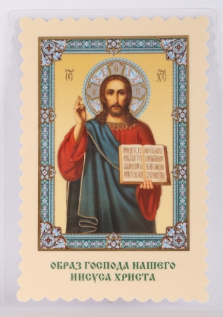 Икона в жесткой ламинации 8х11 с оборотом, двойное тиснение, высечка Спаситель 15