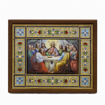 Икона именная №17 деколь, гальванопластика, эмаль в деревянной рамке / золочение, электрофорез / Тайная вечеря