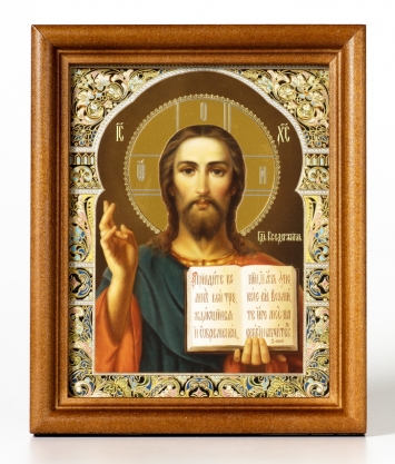 Икона в деревянной рамке 13х18 конгрев, плёнка (без стекла) Вседержитель (с клеймами)