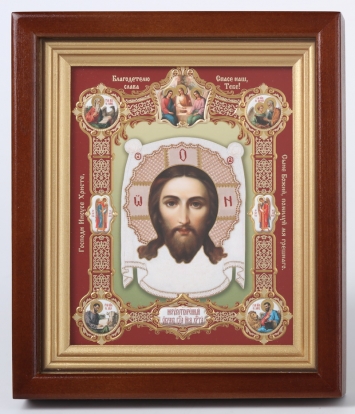 Икона в киоте 13х18 сложный, конгрев, плёнка Спас Нерукотворный с клеймами