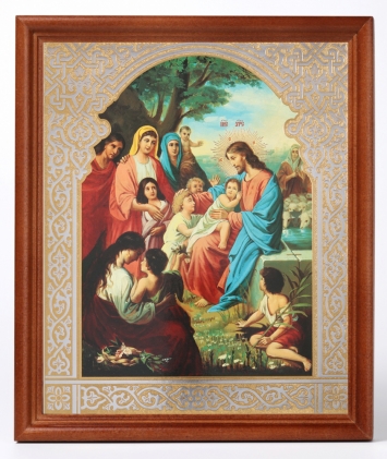 Икона в деревянной рамке №1 18х24 двойное тиснение Благословение детей