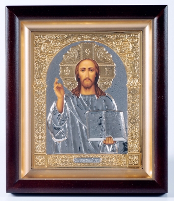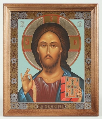 Икона в киоте 18х24 фигурный №4 темпера, риза объёмная №1 Спаситель