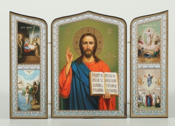Складни деревянные 19х28 трёхстворчатые, двойное тиснение, фигурные, в упаковке Спаситель