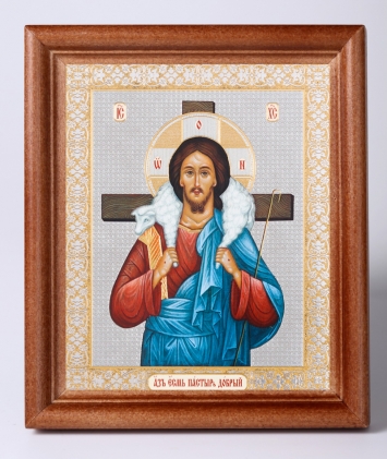 Икона в деревянной рамке №1 11х13 двойное тиснение Добрый Пастырь