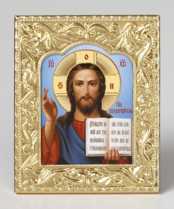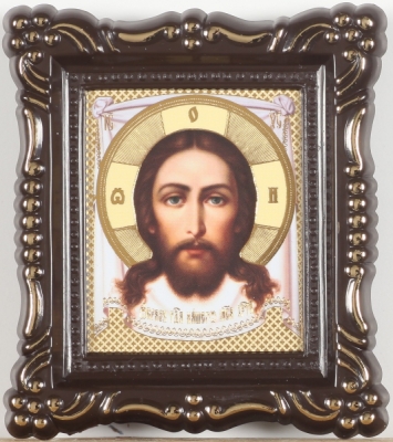 Икона в металлической рамке 6х7,5 фигурная рамка №2 на подставке Спаситель