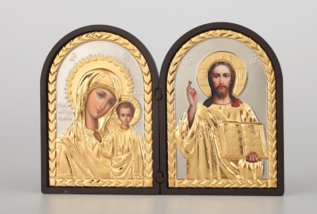 Икона в пластмассовой рамке Складень 9х12 двойной арочный риза №2 Спаситель-Казанская БМ