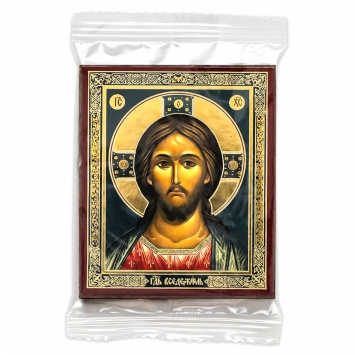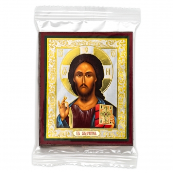 Икона на деревянном планшете 6х9 двойное тиснение, аннотация, упаковка Спаситель 2