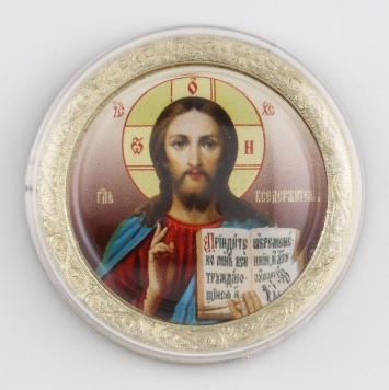 Икона в пластмассовой рамке 4х5 круглая №2 Спаситель 14