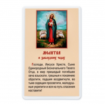 Икона в жесткой ламинации 5х8 с оборотом Добрый Пастырь