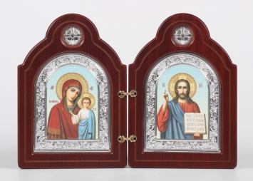 Складень резной Фигурный, икона 9х12 канвас, №2 Спаситель-Казанская БМ