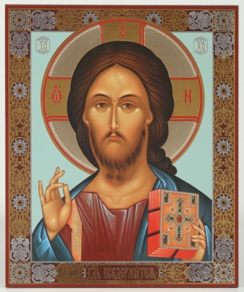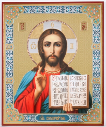 Икона на оргалите №1 30х40 двойное тиснение Спаситель ростовой №2