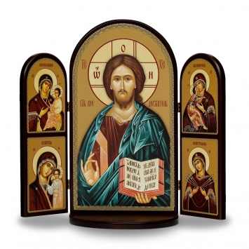 Складень резной Тройной 56х52 "Греческий" Спаситель