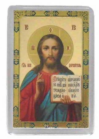Икона в пластмассовой рамке 5х7 пластмассовая с липкой лентой Спаситель