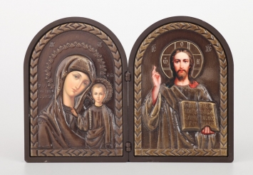 Икона в пластмассовой рамке Складень 9х12 двойной арочный риза №3 Спаситель-Казанская БМ