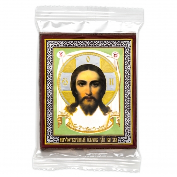 Икона на деревянном планшете 6х9 двойное тиснение, аннотация, упаковка Спаситель 30