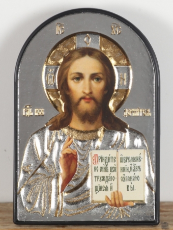 Икона настольная №136 деколь, эмаль / золочение, серебрение / Спаситель