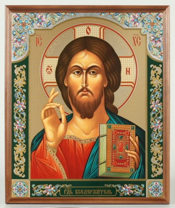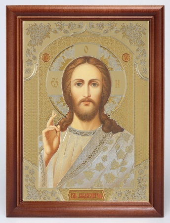 Икона в деревянной рамке №1 30х40 двойное тиснение, упаковка Спаситель (ростовой)