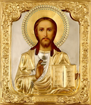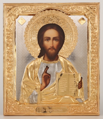 Икона фото в ризе 24х30, риза №192 золочение Спаситель