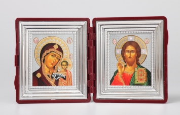 Складни живописные в футляре 24х30 масло, ризы №7, №36 (бархат) Спаситель-Казанская БМ