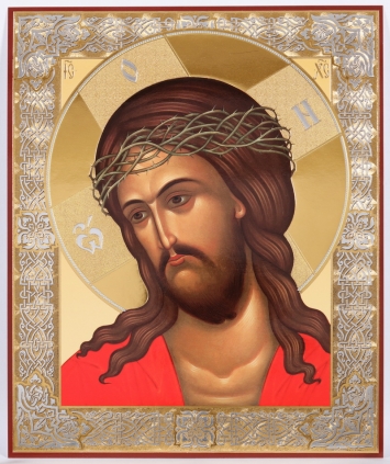 Икона на оргалите №1 18х24 двойное тиснение Спас в терновом венце №2