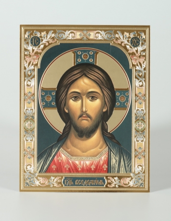 Икона в киоте 18х24 фигурный, темпера, риза объемная, зол., никелир., без цаты Спаситель