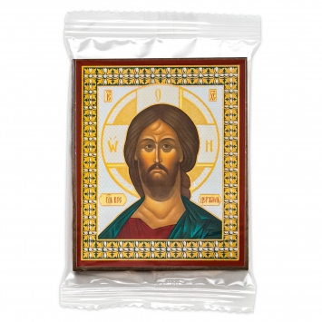 Икона на деревянном планшете 6х9 двойное тиснение, аннотация, упаковка Спаситель 28