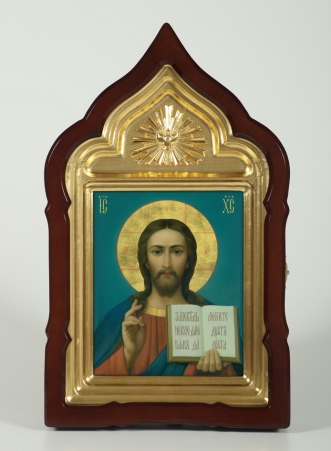 Икона в киоте 6х7 фигурный №2 риза объемная, частично золочёная Спаситель